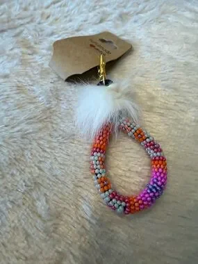 Mini floral Indigenous Handmade Beaded Keychain or purse clip & rabbit fur accent