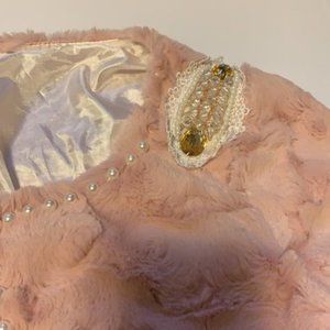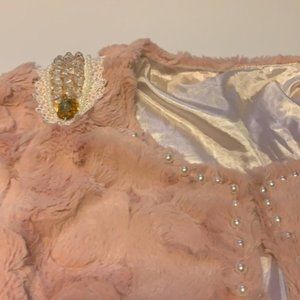 EUC handmade pink minky blazer with faux rhinestone and pearl embellishments in women’s size extra small.
