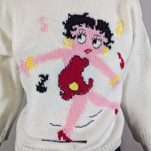 Handmade Betty Boop Knit Sweater Vintage Style Cropped Graphic Pullover Petite X