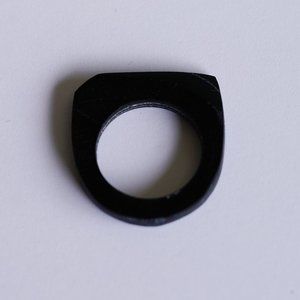 Here I cut and shaped a record into a ring sized 7.5. It is three layers from the same record to give it strength and stability.