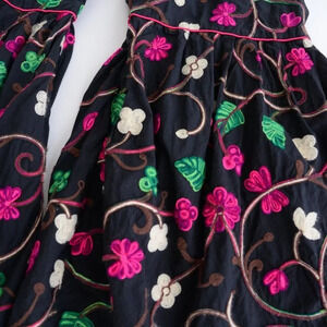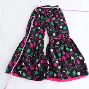 Handmade Black With Neon Pink Floral Bell Bottom Pants Clowncore