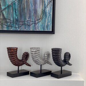 Brand new, handmade wooden spiral-horn candle holder by artist Hallowette.