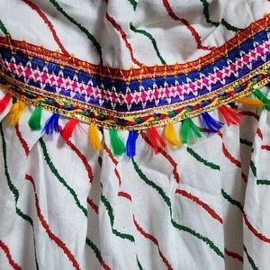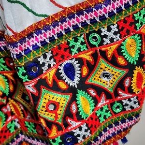 Hand-made Boho embroidered multicolor embellishments cotton skirt one si…