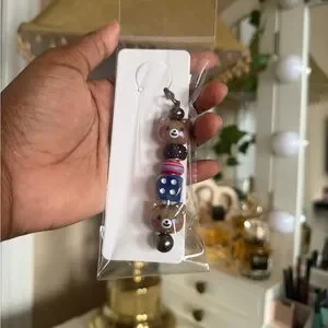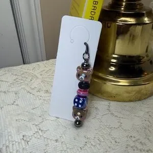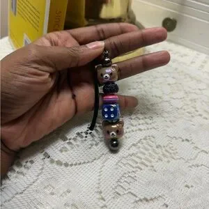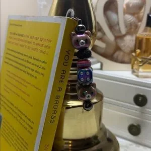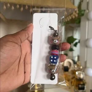 Handmade acrylic beaded bookmark keychain. Silver-tone hardware made out of Zinc Alloy.