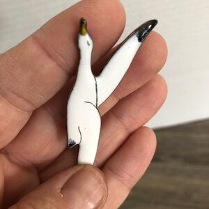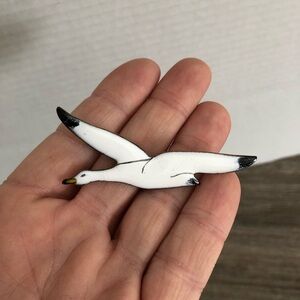 Very well made seagull brooch. Appears to have a brass edging and the front is enamel I believe. It’s very smooth and has almost a puffy feel to it (if that makes sense).