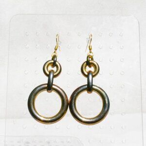 Handmade, contemporary statement loop earrings with a bronze, mixed-metal look. Made using upcycled materials harvested from a broken necklace. Despite their size, the earrings are quite lightweight. A modern and sustainable addition to any jewelry collection!