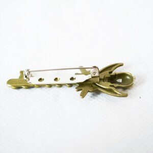 Charming bronze key-shaped brooch pin featuring two sabres in an "X" shape with a skull on top. Very pirate inspired, this will ad a Pirates of The Caribbean-esc vibe to any outfit!