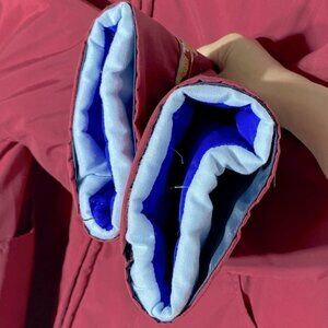 Handmade Burgundy Snow Storm Jacket Parka With Jacquard Dogsled Trim L