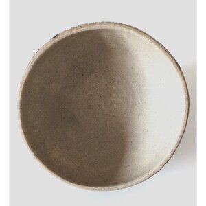 Description : stoneware dish and tumbler , glazed and unglazed textures combined, earthy natural colors , naive style painting . Signed