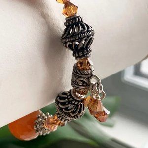 • Matching orange Swarovski crystals add a beautiful dangle / charm to this bracelet.