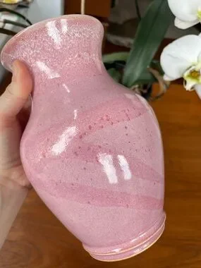Elegant pink ceramic vase with a glossy finish. Features soft marbled tones for a subtle, modern look. Ideal as a centerpiece or accent in any room. Lightweight and easy to style with fresh or dried florals.