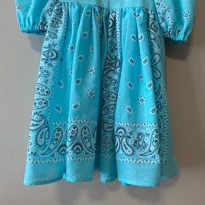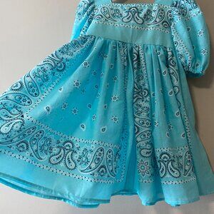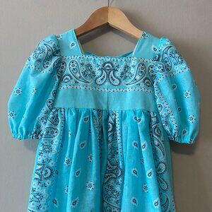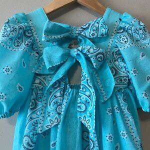 Handmade Children's 100% Cotton Blue Paisley Back Bows Dress