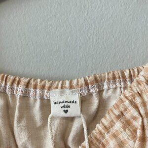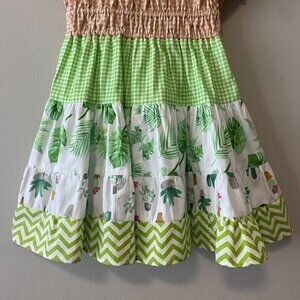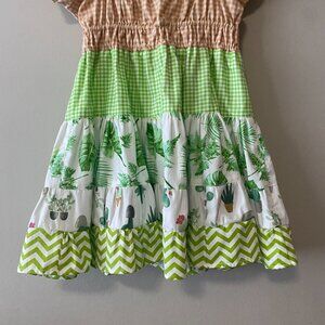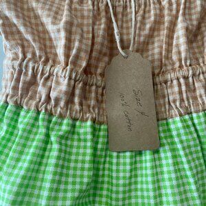 Handmade Children's 100% Cotton Tan White Green Gingham Multi Pattern Dress