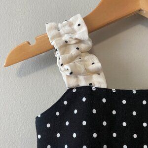 Handmade Children's Black Off White Polka Dot 100% Cotton Elastic Straps Dress