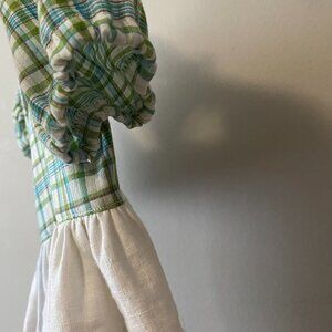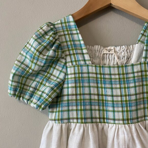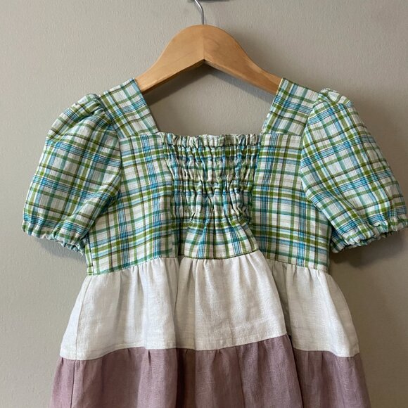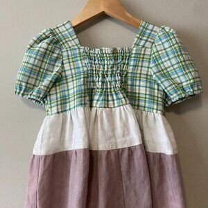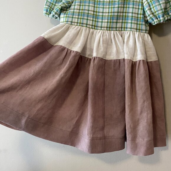 Handmade Children's Cotton Linen Green Blue Tarten White Dusty Mauve Dress