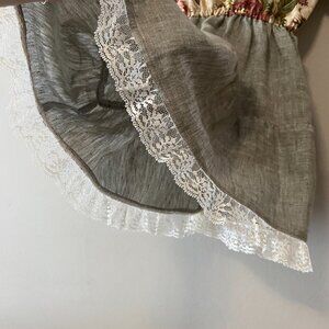 Handmade Children's Cotton Linen Green Multicolour Lace Square Neck Dress