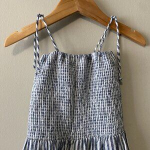 Handmade Children's Linen Rayon Navy Blue White Stripes Spaghetti Strap Dress