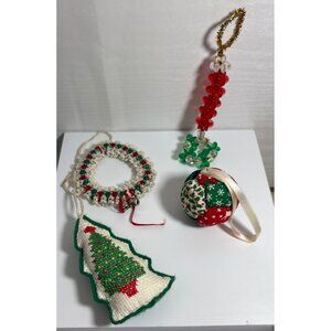 Handmade Christmas Ornament Set Beaded Candle Stick Wreath Embroidery Quilted