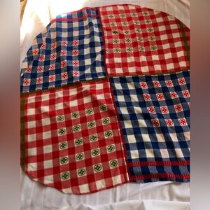 Vibrant checkered fabric with red, blue, and green patterns. Perfect for cottages or country style decor.