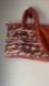 Handmade bag, in excellent condition. Wave pattern, padded handles, zipper closure with large interior pocket. Button details near handle, and floral embroidery on front and back. Measurements in photos