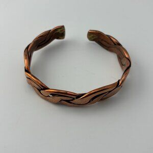 Bracelet is made of soft copper that can be molded. Handmade. 2.75 Inches in diameter.