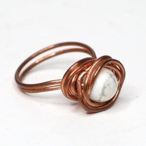 Artisan Crafted Copper Wire Wrapped Ring with White Veined Stone