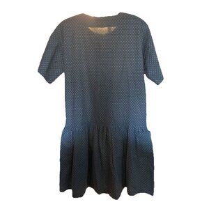 Handmade Cotton Blue Dress with Pockets – Size Large – Vintage Boho Style
