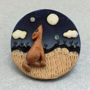 Handmade Coyote Howling at Desert Moon Polymer Clay Earrings Southwest Boho