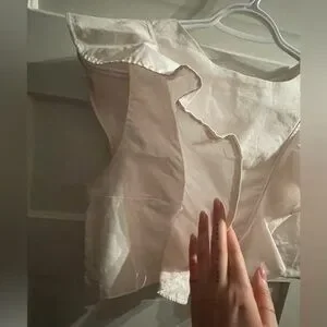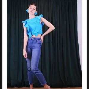 Handmade magnolia top from Viva Aviva. Beautiful ruffle details and super flattering. First photo and last 2 photos are from Instagram and their website to show fit and shape.