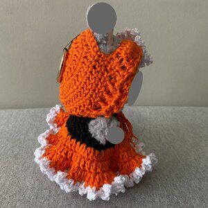 Handmade Crochet Autumnal Orange Black White Outfit for 17cm Doll 2-Piece Set