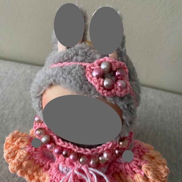 Handmade Crochet Beaded Pink Orange Outfit for 17cm Plush Doll 2-Piece Set