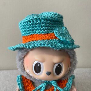 Handmade Crochet Blue Orange Top Hat Outfit for Labubu 2-Piece Set