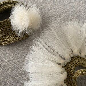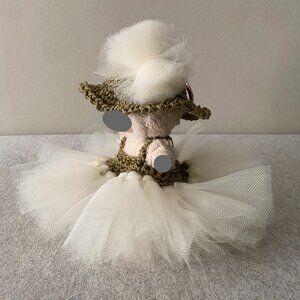 Handmade Crochet Green Cream Princess Tutu for 17cm Doll 2-Piece Set