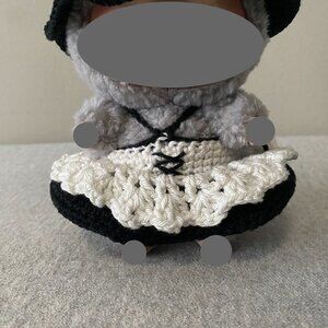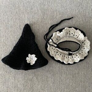 Handmade Crochet Halloween Black White Witch Outfit for 17cm Doll 2-Piece Set