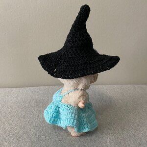 Handmade Crochet Halloween Blue Black Witch Outfit for Labubu 2-Piece Set