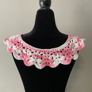 Handmade Crochet Pink White Cotton Wide Neck Collar Neckwear Accessory