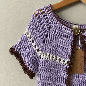 Handmade Crochet Purple Brown Pink White Childrens Fringe Short Sleeve Cardi