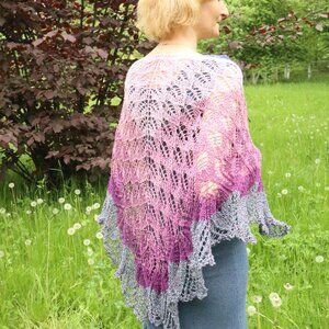 Handmade Crochet Shawl Wrap Pink Purple Gradient