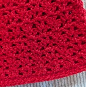handmade crochet shell top, bright red in color, would fit a size small/medium best, a little bit of stretch, 100% pima cotton, excellent condition. similar to stock photo*