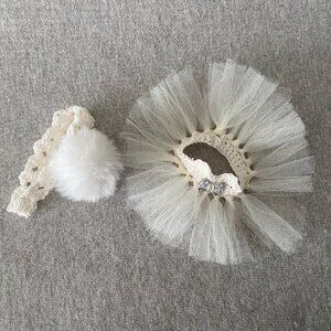 Handmade Crochet White Cream Sweetheart Neckline Tutu for 17cm Doll 2-Piece Set