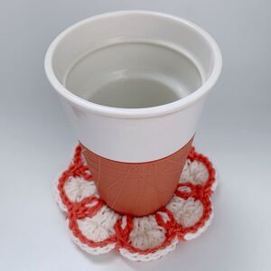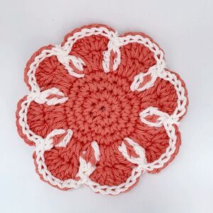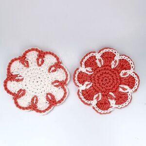 🌼Handmade Crochet Coaster Set - White and Brick Red