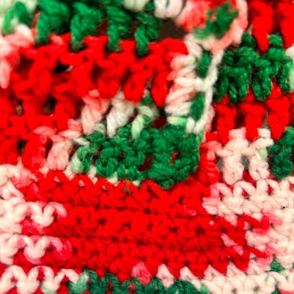 Vintage 1980's Hand Crocheted Christmas Tree Skirt. Red / Green / White Variegated Soft Synthetic yarn EXCELLENT CLEAN CONDITION! FROM SMOKE FREE HOME!