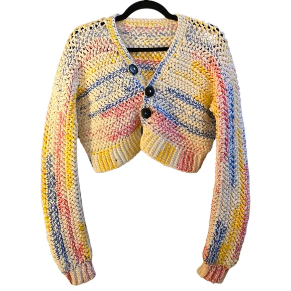 Colorful Handmade Knit Top Tag says "Made by Dani", no size tag fits small/medium 🧶