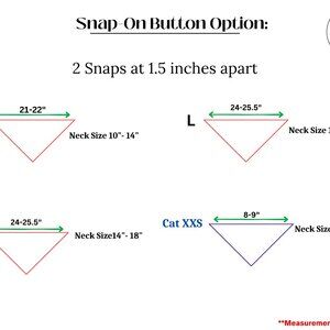 Handcrafted double-sided bandana for medium-sized dogs, made from premium cotton for style and comfort. Designed for neck sizes 14"-18" and measuring 24"-25.5" across, this bandana can be customized with optional snap-on buttons for a secure fit upon request. Perfect for adding a cute touch to your pet’s look whether at the park or relaxing at home. Made in Canada. Care instructions: Hand wash in lukewarm water, lay flat to dry. Do not bleach.