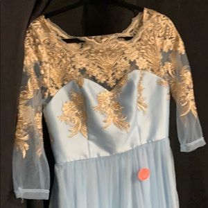 Handmade from London, size UK 12/US Large Blue with rose gold sheer sleeves Never worn Brand new with tags