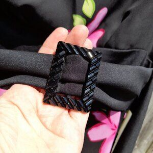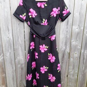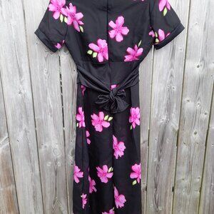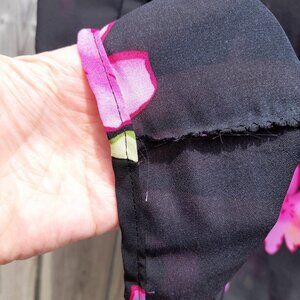 Handmade Dress Black Pink Floral Sheer 36"B 28"W Stretchy Mennonite
