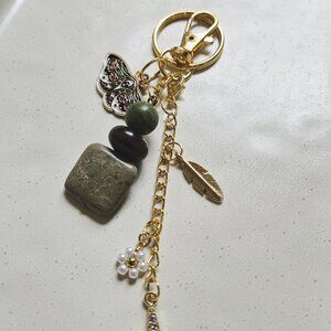 Handmade Earthy Keychain with Natural Stone Beads, Lightning Bolt Charm & Butter
