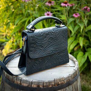 These handmade purses are individually done, sewn, and carved. This means that each design is one of a kind!