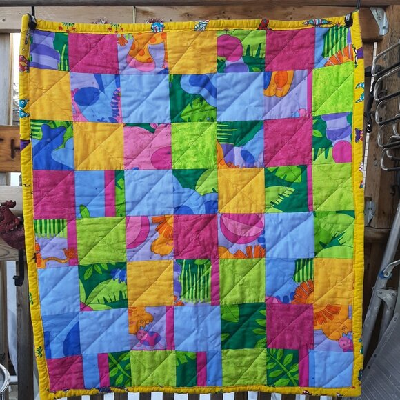 Handmade Fabric Baby Quilt Hand Quilted Cotton 30" x 34"