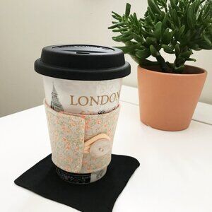 Handmade Fabric Coffee Cozy - Reusable Coffee Cup Sleeve, Peach Floral